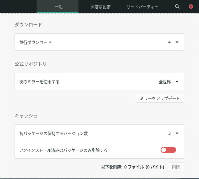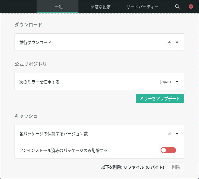 公式リポジトリが「Japan」になっていることを確認して、「ミラーをアップデート」をクリックします。