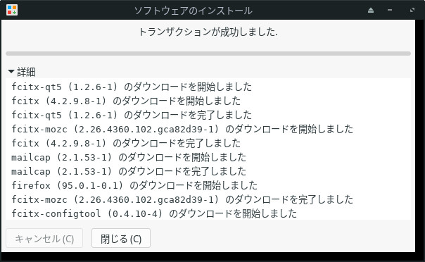 「トランザクションが成功しました。」と表示されたら、インストール完了です。