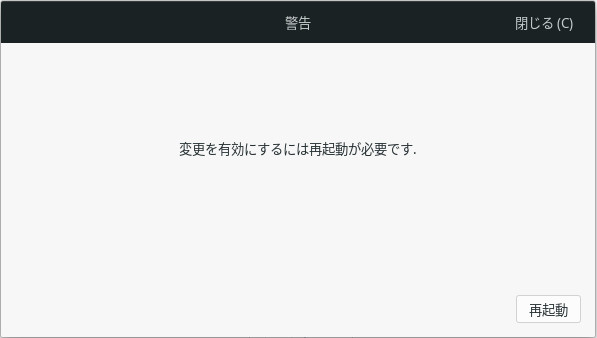 アップデートが完了すると、再起動を促すダイアログが表示されるので、「再起動」ボタンをクリックして再起動します。