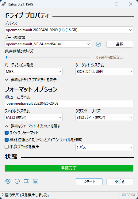 次回は、このインストールメディア(USBメモリ)を使って、実際にopenmediavaultをインストールしていきます。