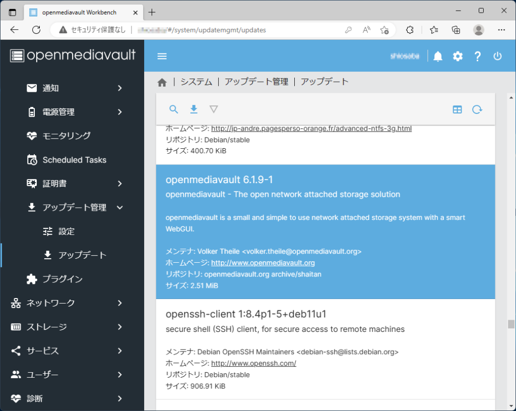 仕方ないので、openmediavaultはコマンドでアップデートします。