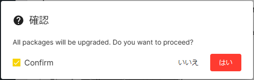 確認ダイアログが表示されるので、「Confirm」をチェックしてから「はい」ボタンをクリックします。