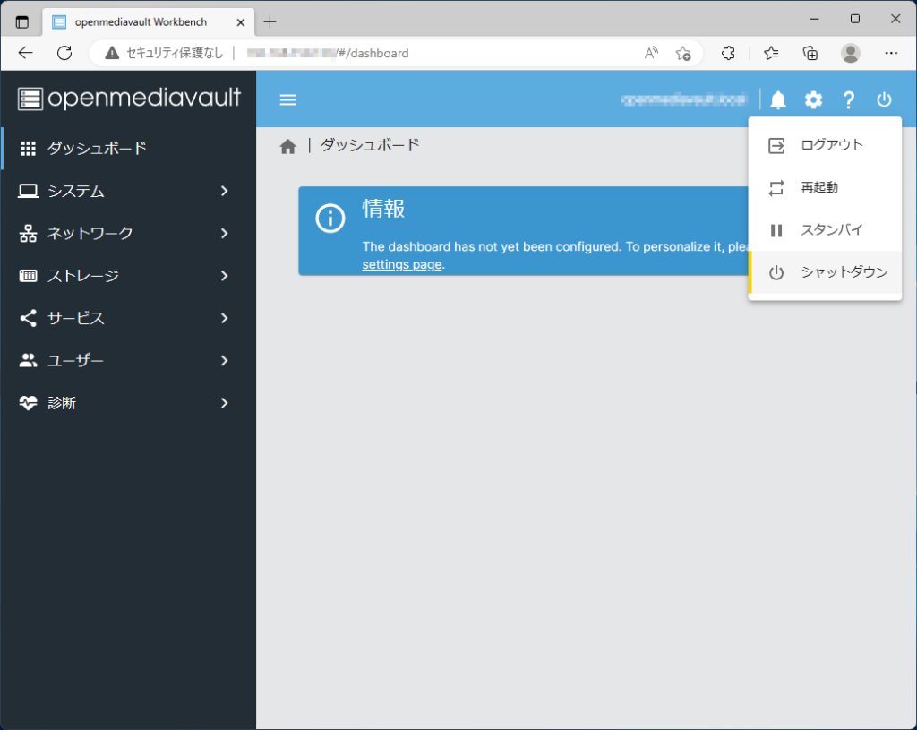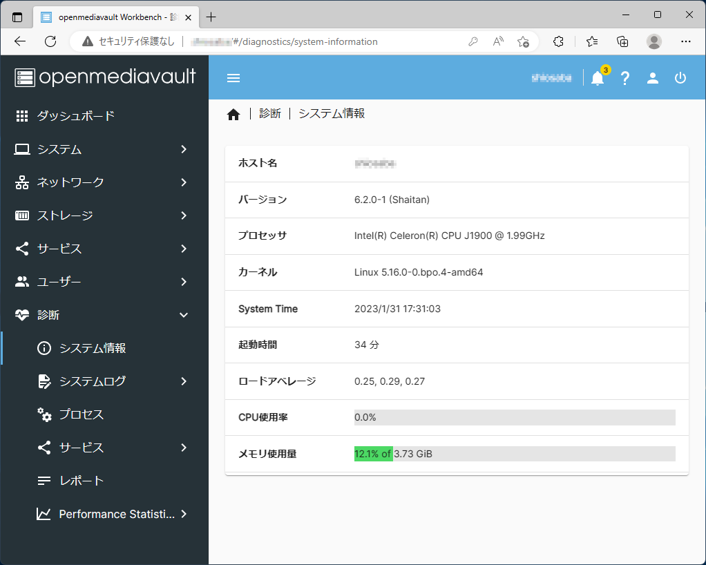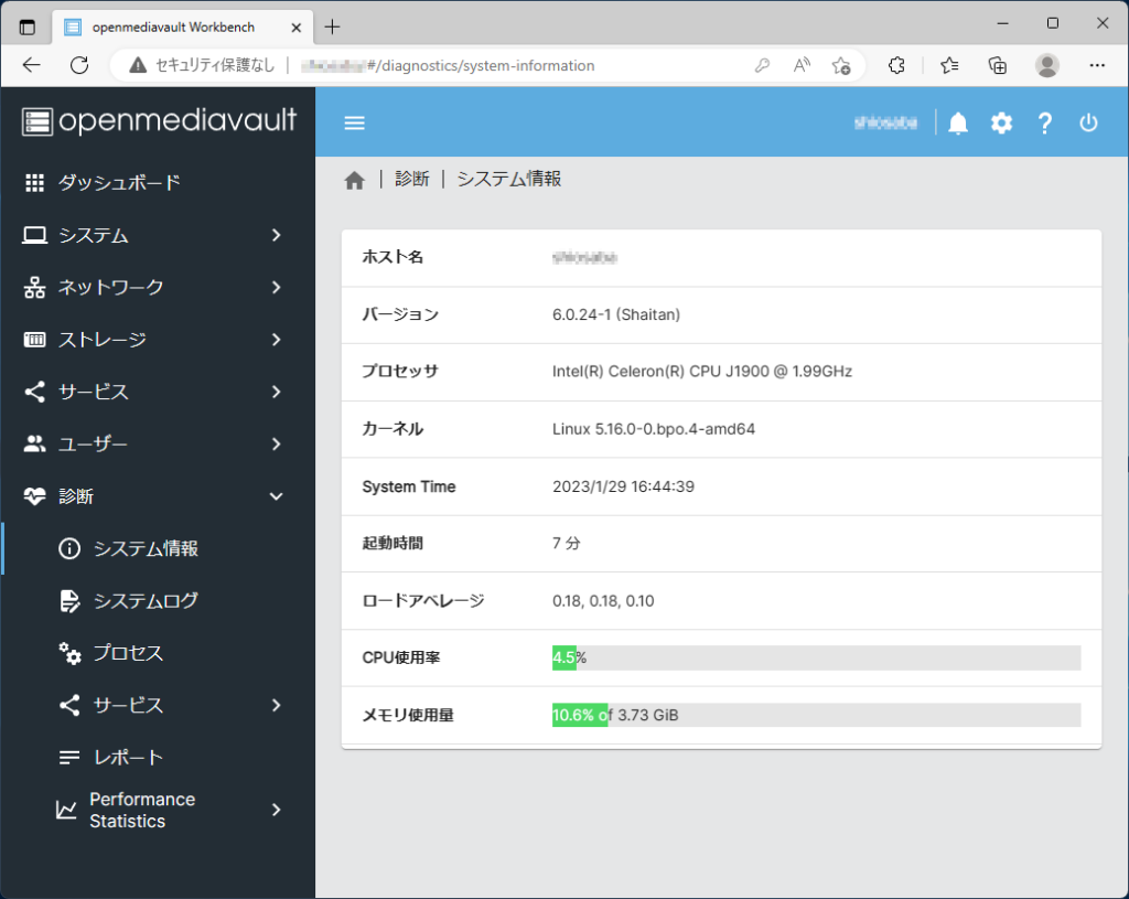 「診断」-「システム情報」を確認すると、openmediavaultのバージョンが上がっていました。