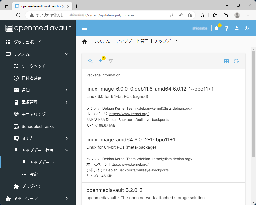 しかし、Linuxのkernelとopenmediavault自身はアップデートされませんでした。