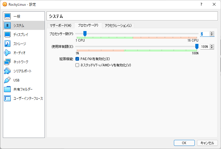 ここまでで、RockyLinux用の仮想マシンができました。